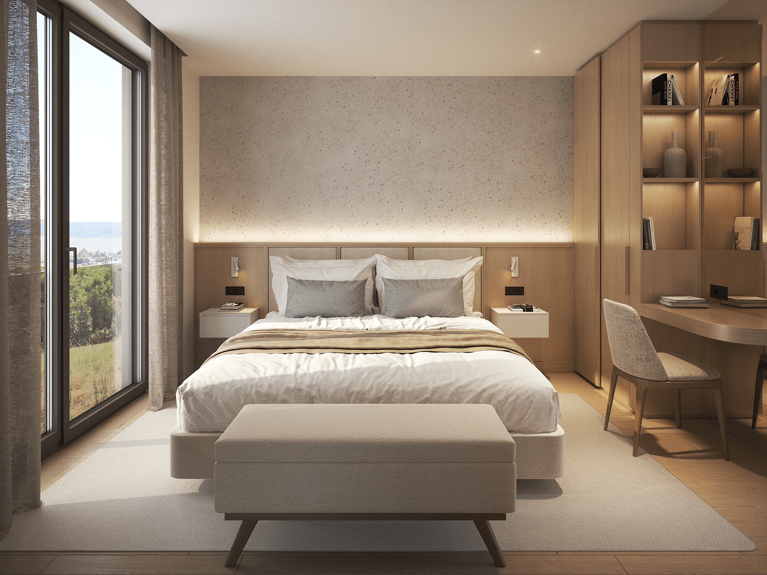 Otvorene vizure prema Medulinskom zaljevu usmjeravaju prostornu organizaciju, dok luksuzni materijali i pročišćeni volumeni stvaraju skladan odnos suvremenog izraza i mediteranskog konteksta.